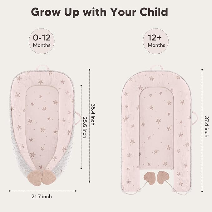 - Easy to Clean & Maintain: The baby lounger pillow pillow comes with a removable, machine-washable cover, making cleanup a breeze for busy parents. Its adjustable design grows with your baby, ensuring long-lasting use from infancy to toddlerhood.