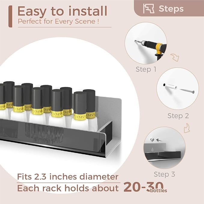 - Multifunctional: RORKIM's acrylic nail polish racks are more durable than wood or metal Also store books, toys, spices, and more to organize your room, bathroom, and kitchen.