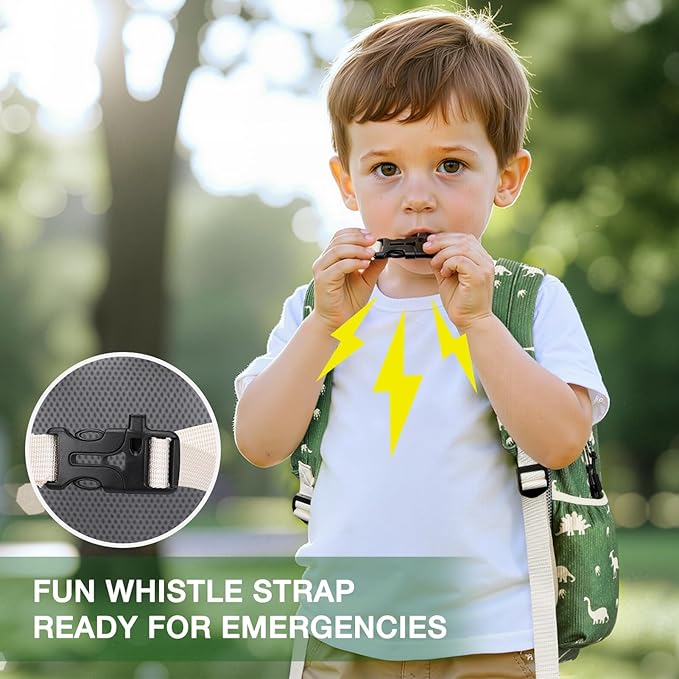 - 【Comfort Meets Safety】Built with breathable padding and ergonomic straps, this toddler backpack reduces pressure on little shoulders; A chest buckle with a built-in whistle adds playful functionality — it’s a fun feature for daily use and could provide help in unexpected situations