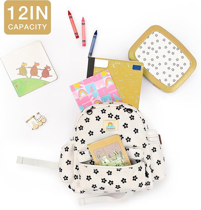 STEAMEDBUN Corduroy Toddler Backpack for Girls 2-4: Kids backpack for Boys Girls - 12 inch Preschool Kindergarten Backpacks - Flower