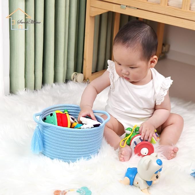 - 【Clean Storage for Desk & Nightstand】Designed in a calm, neutral tone, this light blue rope basket is perfect for organizing essentials on your office desk or bedside table. Ideal for chargers, notebooks, keys, or baby items, it blends into modern or coastal rooms. Use it as a desktop organizer, baby nursery bin, or gender-neutral bedside catchall—both practical and aesthetic.