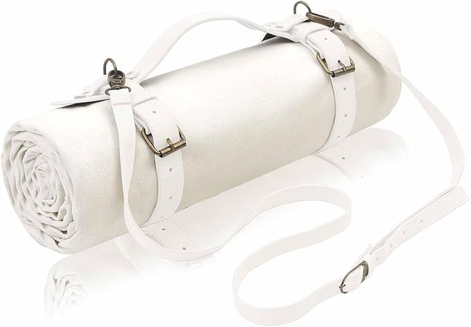 • Includes: 1 white canvas mat, faux leather handle/should strap, and webbing strap