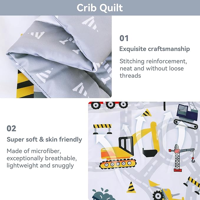 - Complete Set: This 3-piece set includes a beautifully crafted baby quilt, a fitted baby sheet, and a matching bed skirt, offering a stylish and coordinated look for your nursery.