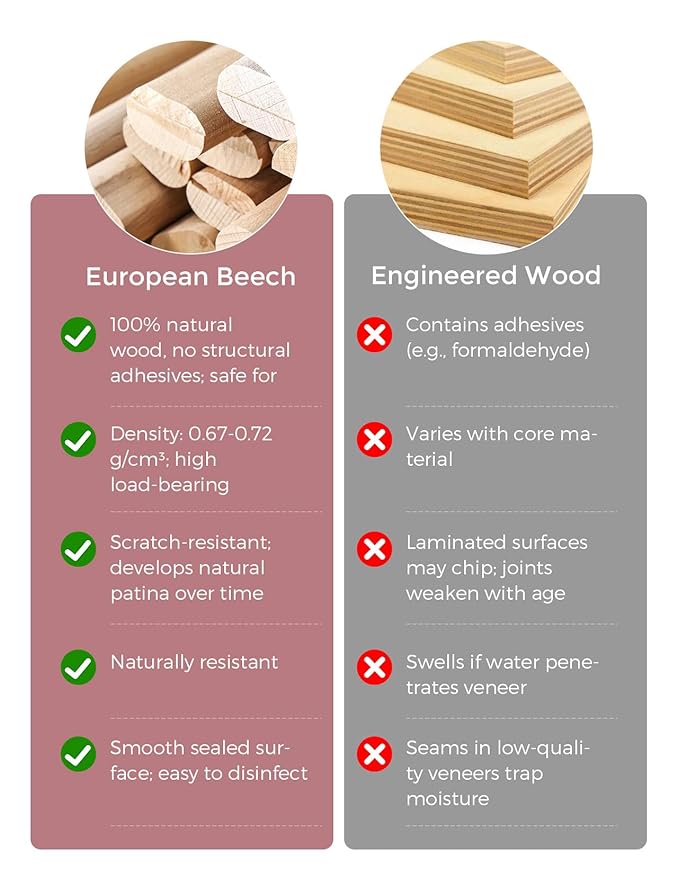 - Safety First, Comfort Always - Our commitment to safety goes hand-in-hand with prioritizing comfort. The larger, softer five-point harness not only keeps babies securely positioned but also significantly reduces shoulder strain through its enhanced shoulder support design. The stable triangular frame and non-slip silicone feet prevent tipping or sliding. Made of FSC-certified splinter-free beechwood, and rigorously tested according to global safety standards ASTM (US) & EN (EU).