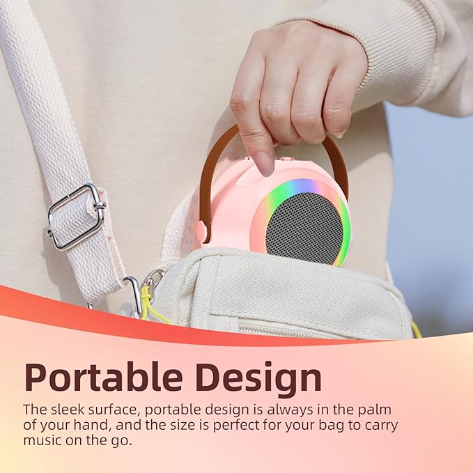 - 💡 Dynamic LED Lights & Portable - Sync lights to music beats. Compact speaker (115x82x98mm) and handheld mic (38x38x128mm) for karaoke anywhere.