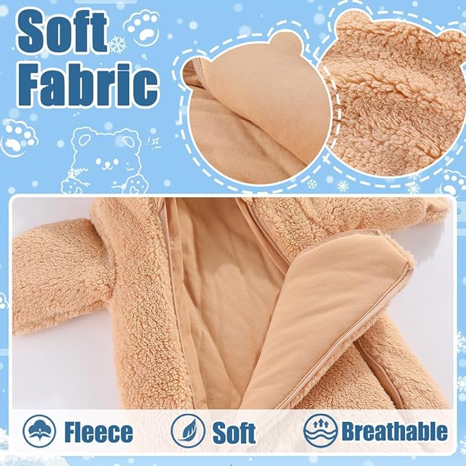 • đŸ»ă€High Quality Fabric】 The newborn baby winter jumpsuit bear onesie hooded snowsuit made of high-quality cotton polyester, the inner layer is cotton, the outer layer is fleece fabric, soft and warm, protect the baby's skin, warm your little one throughout autumn and winter.