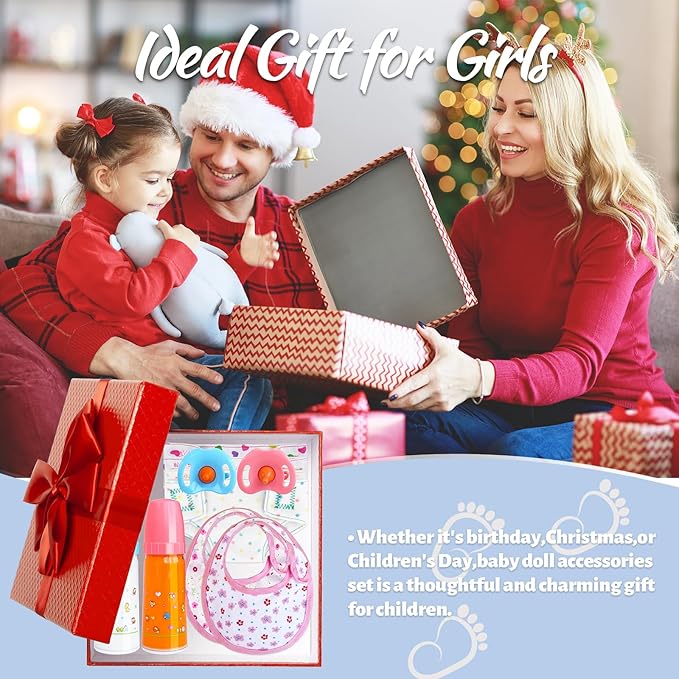 - Comprehensive Set:Baby doll accessories set includes everything needed for endless pretend play games,including 2 magical disappearing bottles,2 pacifiers,4 diapers,and 2 bibs.Encourage your child to engage in hours of creative games and role-playing as caring parents,cultivating empathy.