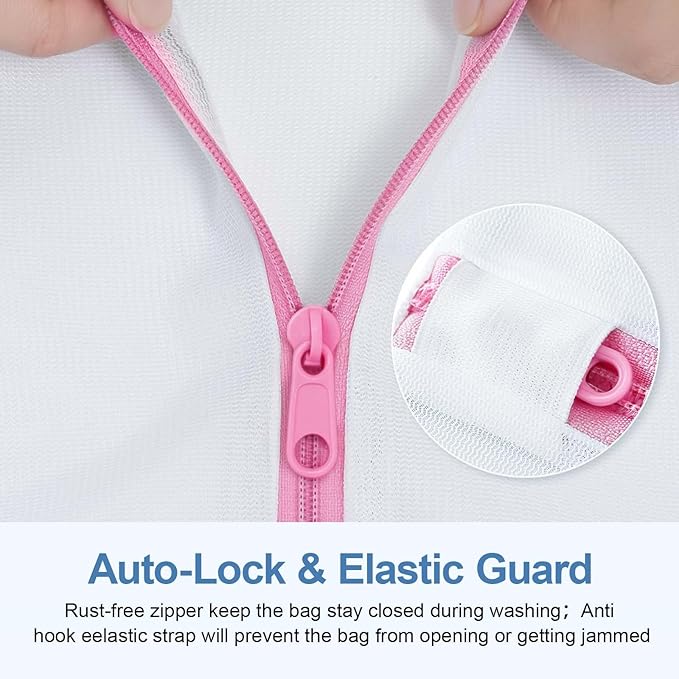 Smooth Zipper with Guard: Rust-resistant zipper with auto-lock and elastic cover keeps the bag closed and protects your clothes and machine from scratches.
