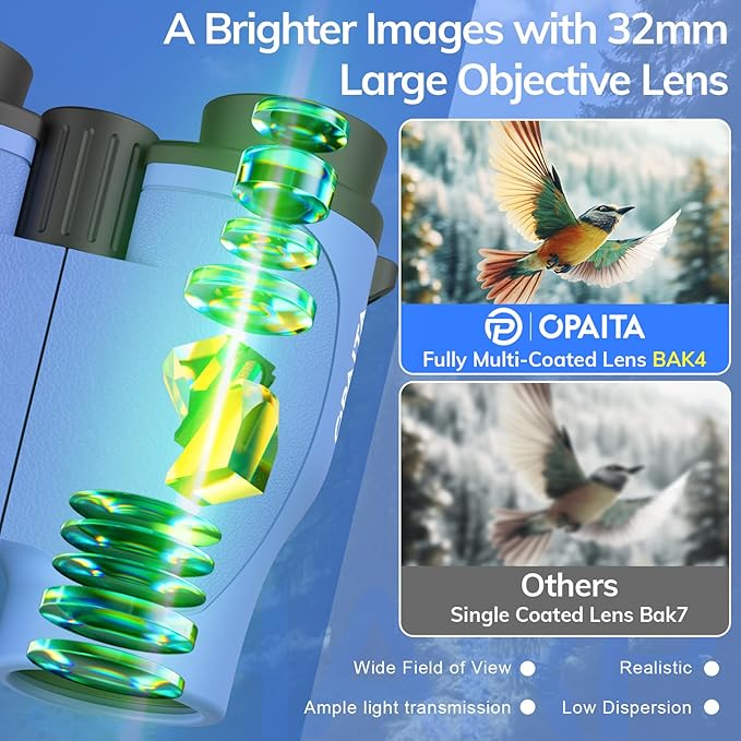 Compact Binoculars for Adults High Powered - OPAITA 20x32 Small Binoculars for Adults Kids with Low Light Vision for Hunting Cruise Ship Travel Concert Hiking Blue