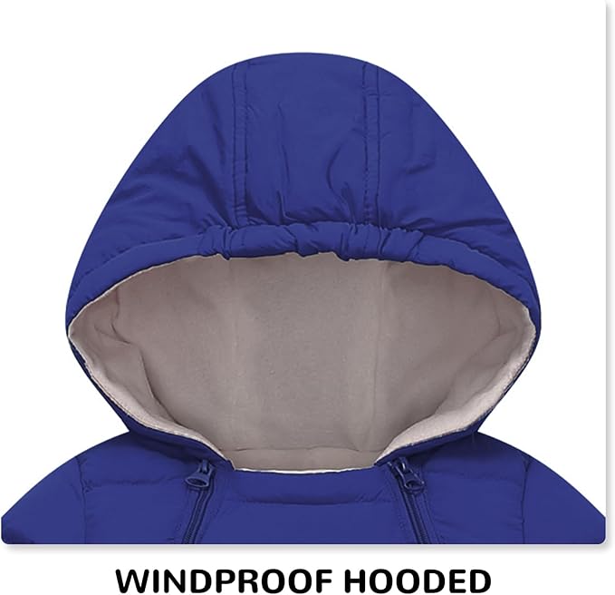 - Clothing design: baby snowsuit is made of high-quality polyester fabric, fluffy and soft fabric to let the baby feel warm and comfortable, snowsuit toddler comes with a windproof hood and elastic band sleeves to keep your baby from catching cold.