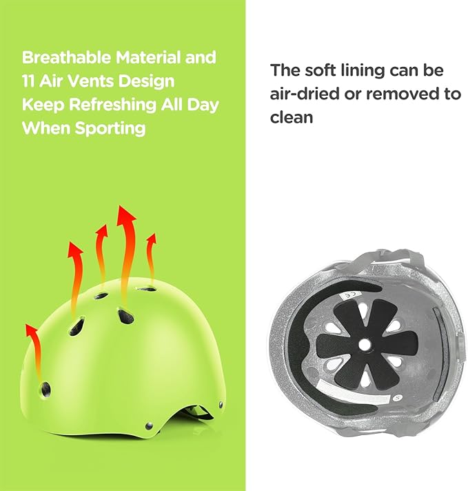 - Wonderful Material -- Our kids safety gear is adopted anti-scratch high hardness PVC shell padded with Soft EVA material. Those high-quality liners are not only durable for many years, but also breathable. Adopted ventilate fabric to keep cool and clean while biking, riding, cycling and skateboarding