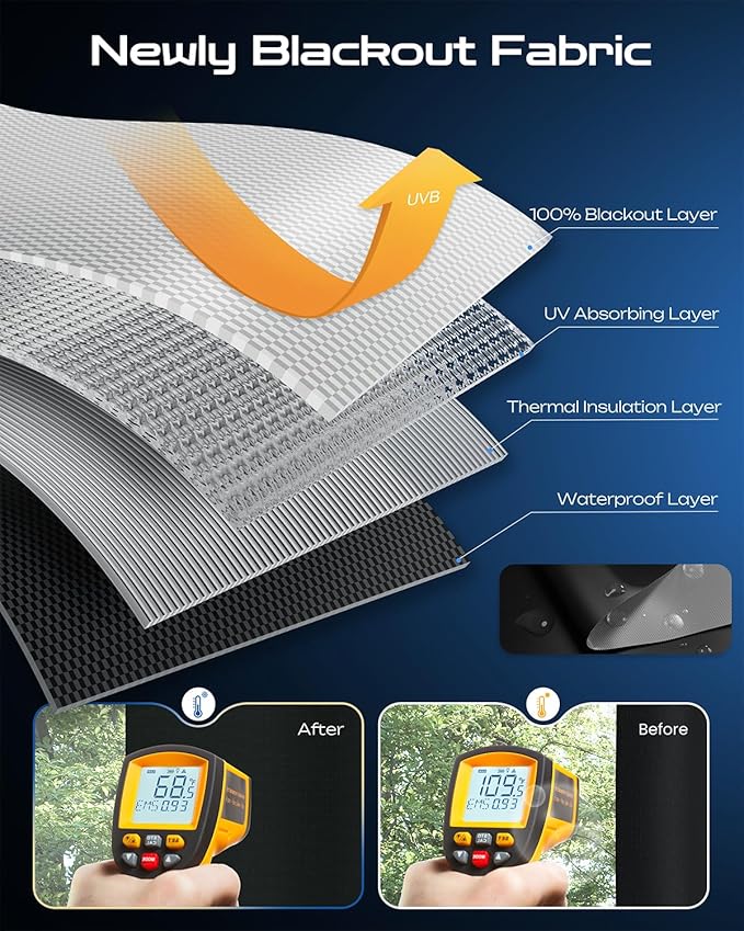 - Full-Scene Portable Application - The blackout curtain is compact and lightweight when folded, suitable for carrying during travel, camping, or temporary hotel shading. It supports multi-panel hook-and-loop splicing with a 5 cm overlap to cover extra-wide windows. Whether for bedroom sleep, living room movie viewing, office partitions, or RV space renovations, it meets diverse scene requirements