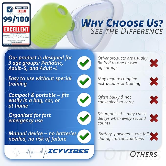Premium Choking Rescue Device for Kids and Adults โ Portable Suction Tool Airway Clear Travel & Home Safety Kit for Emergency Use Includes 3 Sizes for Baby Essential First Aid Anti