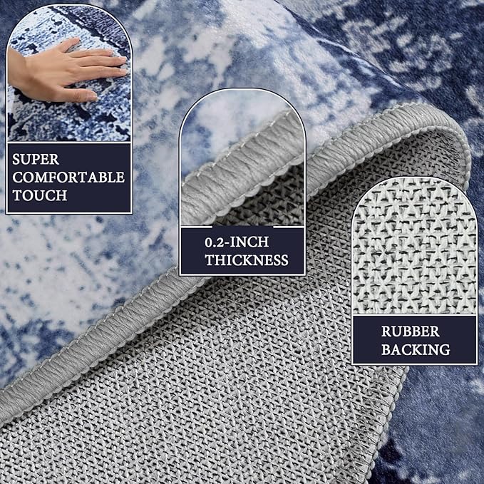 LOCHAS Rug for Living Room, Washable Soft Area Rugs for Bedroom 8x10, Abstract Carpet for Indoor Office Kids Dining Room Nursery Floor, Blue Geometric Vintage Home Decor, Non Slip, Pet Child Friendly