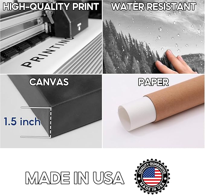 - 【High-Quality Modern Canvas】: Gallery-wrapped, ready to hang with pre-installed hooks. Printed with eco-friendly, waterproof, and UV-resistant ink to prevent fading. Made from 35% cotton, 65% polyester with a satin finish. Securely packaged, ensuring long-lasting beauty for generations.