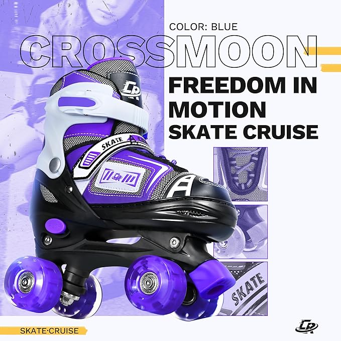 • ✔️ 4 Size Adjustable – One Pair Fits Multiple Sizes Designed to grow with your feet, these quad skates adjust across four sizes for a long-lasting fit, ideal for boys, girls, teens, and adults.