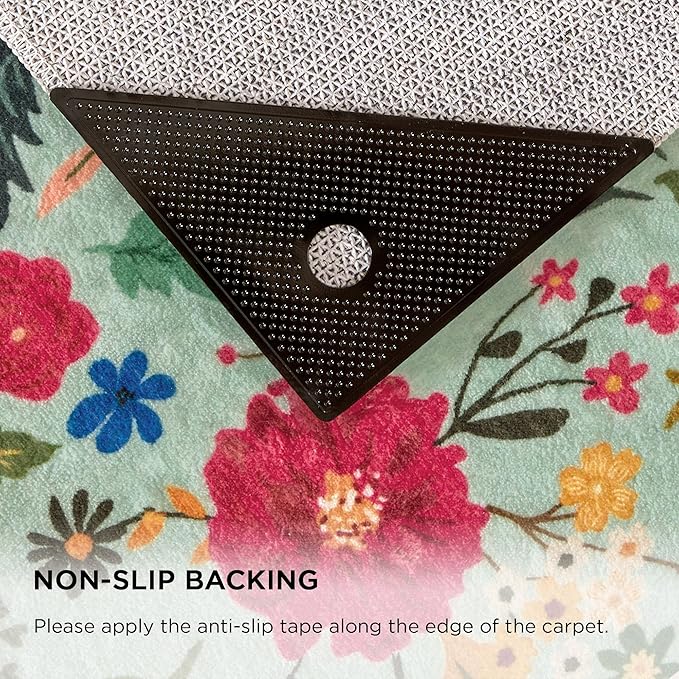 - NON-SLIP: Our rug features a textured TPR backing that stays firmly in place, and comes with non-slip pads - just follow the simple instructions to secure it. This colorful rug works perfectly in living rooms, bedrooms, dining areas, entryways, kids' playrooms, home offices, and kitchens.