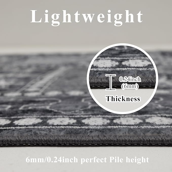Washable Area Rugs 8x10, Large Rugs for Living Room, Carpet for Bedroom, Soft Faux Wool Retro Dining Room Rug, Non-Slip Backing Resistant Low Pile Vintage Print Rug for Home Office (Grey)