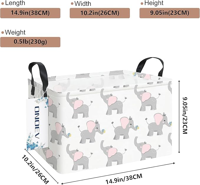 Rectangular Folding Laundry Basket,waterproof Canvas Basket,gift basket,Suitable for children's room,Office,Clothes,Toys Storage(Elephant calf)