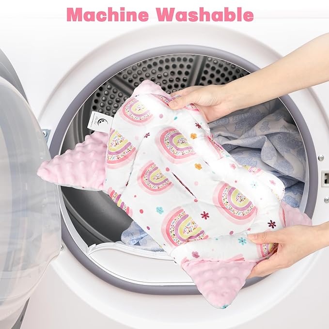 Infant Car Seat Insert with 3 Strap Covers, 3 in 1 Reversible Rainbow Baby Car Seat Head Support for Newborn, Baby Girl Newborn Essentials for Preemie to Infant, Stroller, Swing, Bouncer (Pink)
