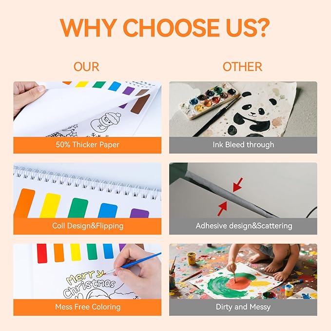 PIRIE Paint with Water Coloring Books for Kids,Watercolor Painting Sets Painting Activity for Kids Ages 3 4 5 6 7 8+,Birthday Gifts Arts & Crafts Toy (Christmas)