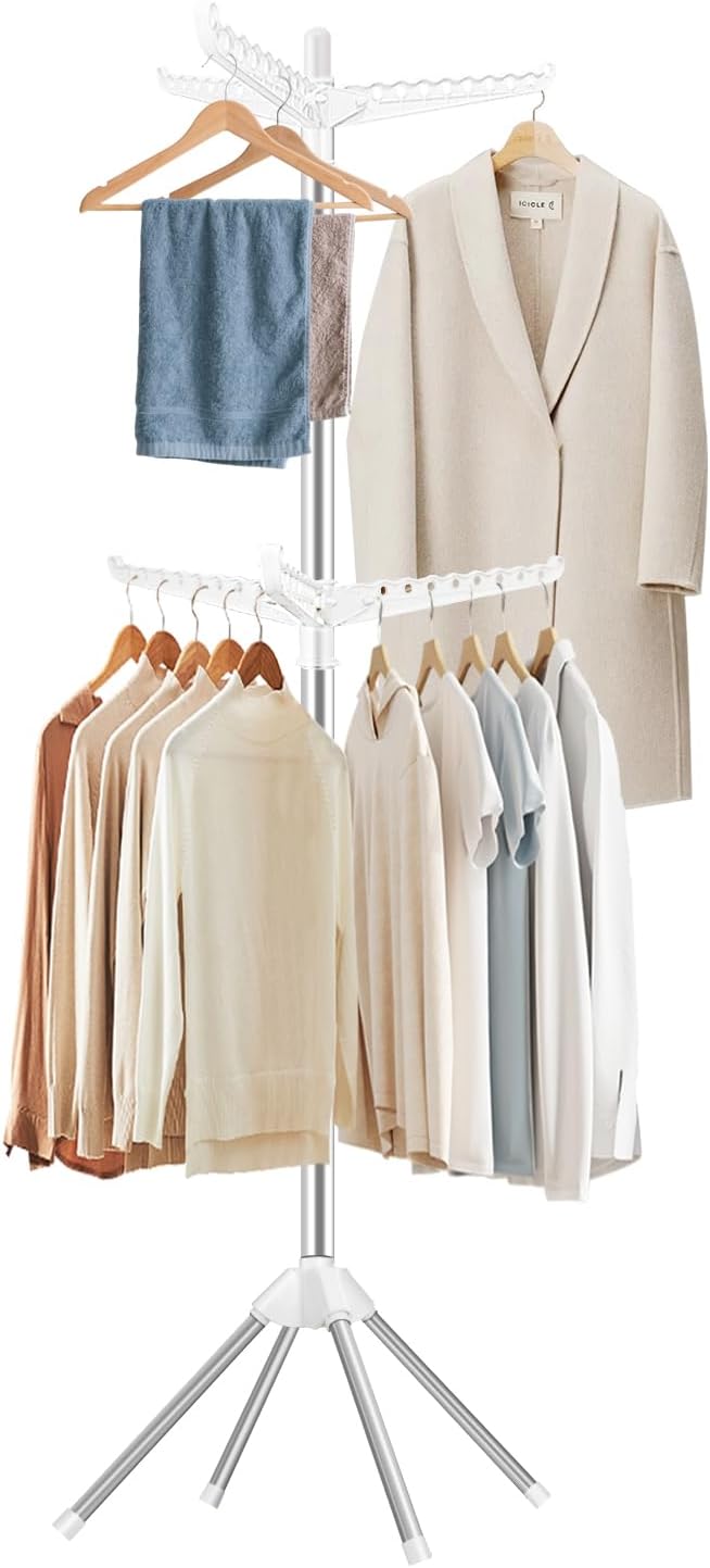 - [360-Degree Independent Rotation]Both tiers of the SUYU drying rack rotate independently, providing easy access to all your clothes. This feature simplifies the hanging and retrieval process, making it a convenient addition to any space.