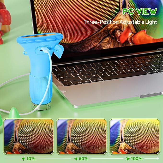 - Large Storage Capacity - The blue microscope toy comes with storage space for 400 photos (no TF card needed), allowing children aged 3-8 to save their discoveries and research results anytime, making it easy to share and reviews with their friends