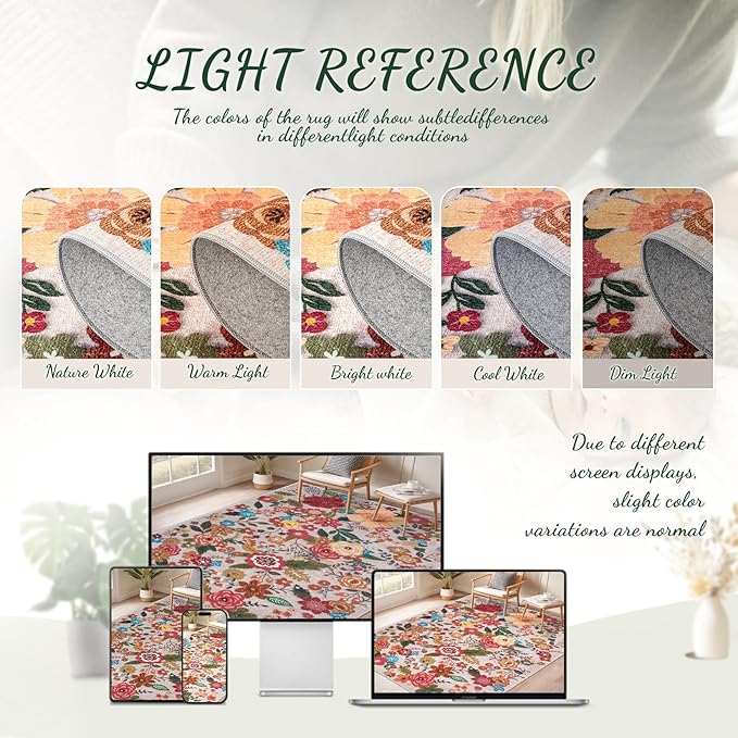 9x12 Area Rug for Living Room: Vintage Floral Washable Rug Soft Boho Non Slip Carpet Large Indoor Floor Non Shedding Low Pile Thin Carpets for Bedroom Dining Room Farmhouse Nursery Home Office Beige