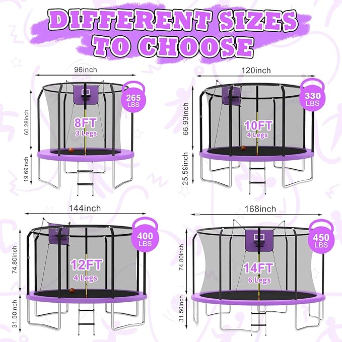 - Great Choice for Family Outdoor Entertainment: More than just a backyard trampoline, this all-age outdoor trampoline creates unforgettable family moments. Bring happiness to both adults and children. Our product is designed to deliver endless fun and exceptional valueβmaking it the trusted choice for a safe, interactive, and durable outdoor play experience
