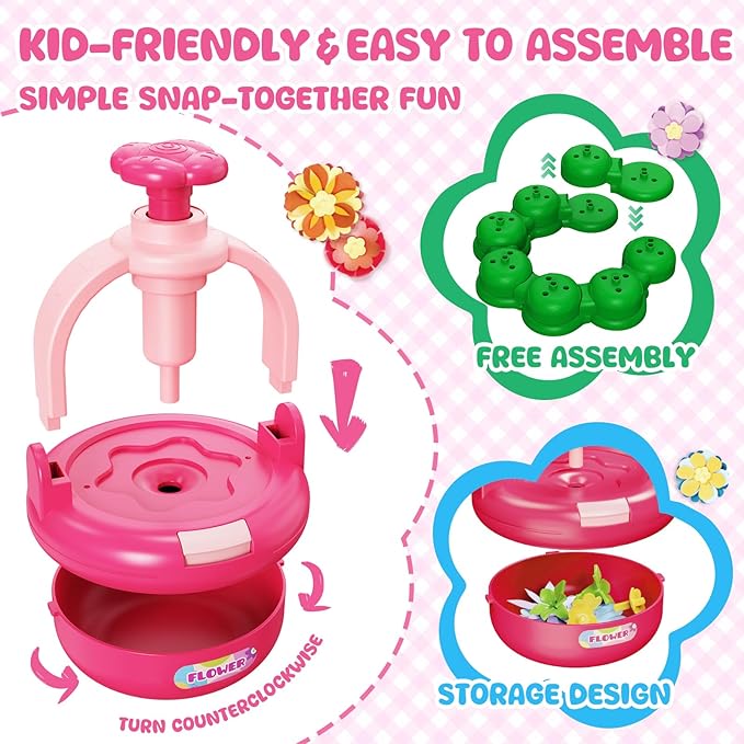 - Complete Toy Flower Bouquet Kit with Storage Function: Flower making toy package includes: flower making machine, petal, stems, stamen, receptacle, vase, bouquet wrapping paper, bases and step-by-step visual guides. Fabric flower making kit designed for collaborative play, encouraging quality time between parents and children through shared creative projects.