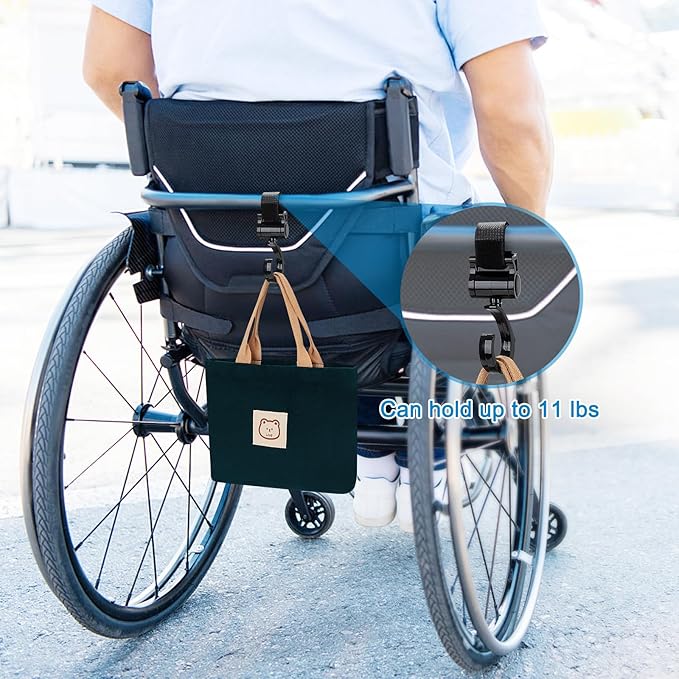 - This cup holder with hook set comes with a universal hook that can be hung on a stroller, wheelchair, bicycle, or other device. The hook has a maximum load capacity of 11 lbs.