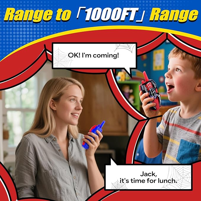 - Spider Walkie Talkies: Inspired by superhero role-play, these kids walkie talkies feature a fun spider theme loved by kids. Lightweight at just 100g, they are perfect outdoor toys for kids ages 3-12, whether exploring the backyard or on a camping trip