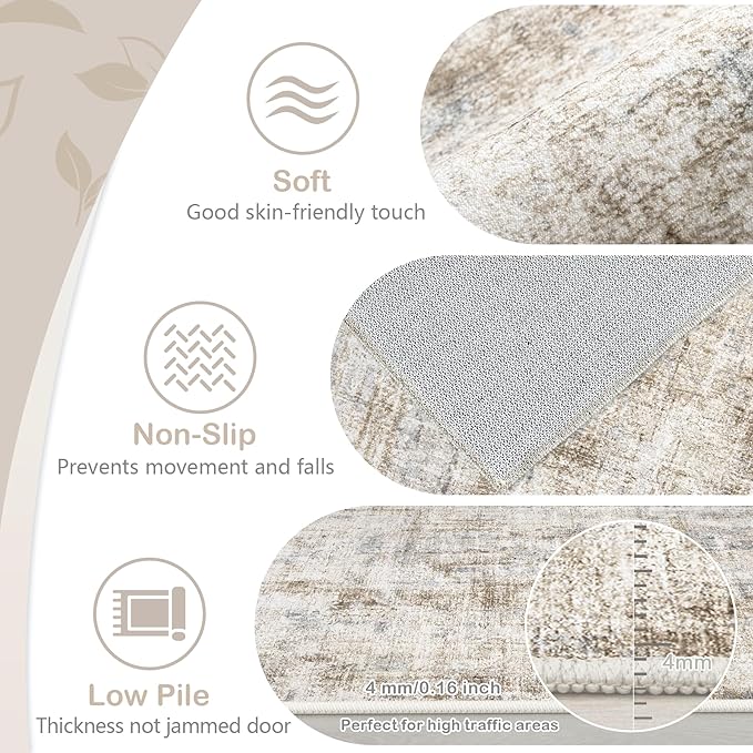 - Anti-Stain Low Pile Rug: Our washable rugs surface pile are short and dense, can block dust and hair embedded, spilled drinks coffee and other liquids will not penetrate into the neutral rug inside; Our 8'x10' large rug is moderately thick and won't snag on doors, which not only keeps indoor rugs clean, but also adds convenience for high traffic areas.