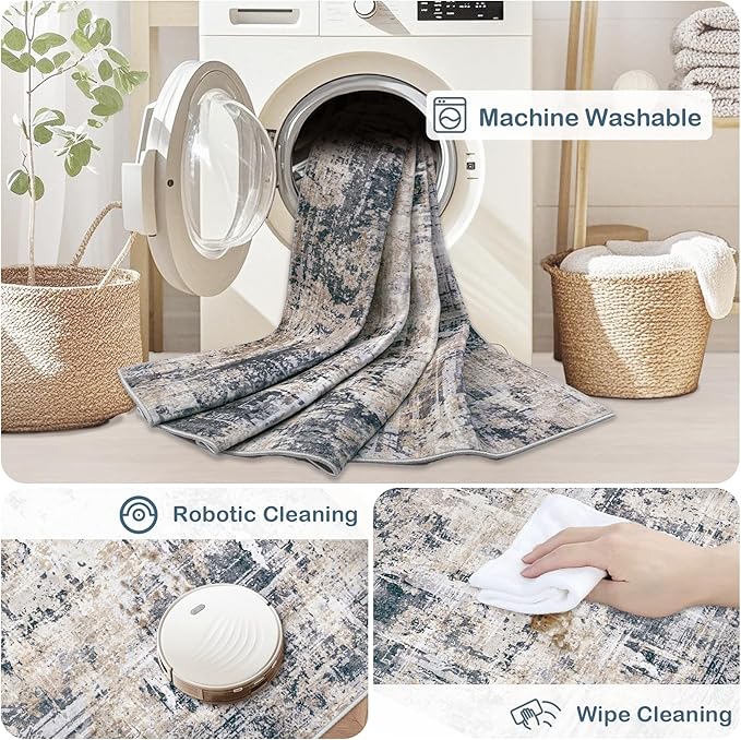 - Easy To Clean And Care: The low-pile design of the washable rug 6x9 makes it easy to find and clean stains in time, so you can just wipe and sweep the carpet on a daily basis, and the bedroom rug can also be put in the washing machine for a quick clean, it is easy to dry quickly, saving your time.