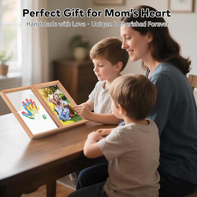 - DUAL DISPLAY MODES & PHOTO AREA: Our upgraded keepsake frame also have a photo frame feature, the photo side is big enough to hold one large photo or several smaller ones. Imagine this framed treasure on your living room wall: your toddler's tiny hand nestled in yours, surrounded by family photos that spark conversations for generations