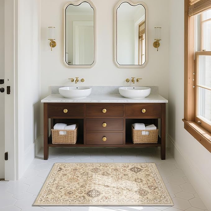 Machine Washable Boho Rugs for Entryway: Door Mat Indoor Entrance 2x3 Small Throw Rug Stain Resistant Non-Slip Low Pile Soft Carpet for Kitchen Front Door Indoor Entrance Entry Bedroom