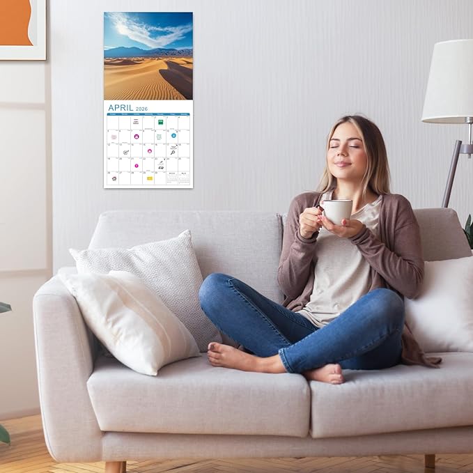 - 🏞️【Calendar 2025-2026】- 18-month wall calendar 2025-2026, covering July 2025 to December 2026. The unfolded size is 12x24 inches. Each page contains a monthly overview, mini month and moon phase reference for your quick browsing.