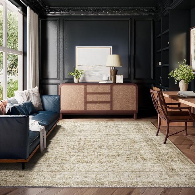 Machine Washable Rugs for Living Room: 8x10 Area Rugs for Bedroom Boho Vintage Rugs Stain Resistant Non Slip Low Pile Soft Lightweight Carpet for Kitchen Dining Room Farmhouse Nursery Kids Room