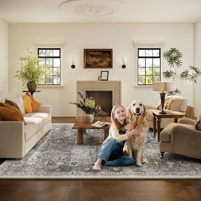Machine Washable Rug for Living room: 5x7 Area Rugs Boho Vintage Rugs Stain Resistant Non Slip Low Pile Lightweight Soft Carpets for Bedroom Kitchen Dining Room Nursery Kids Room Farmhouse Home Office