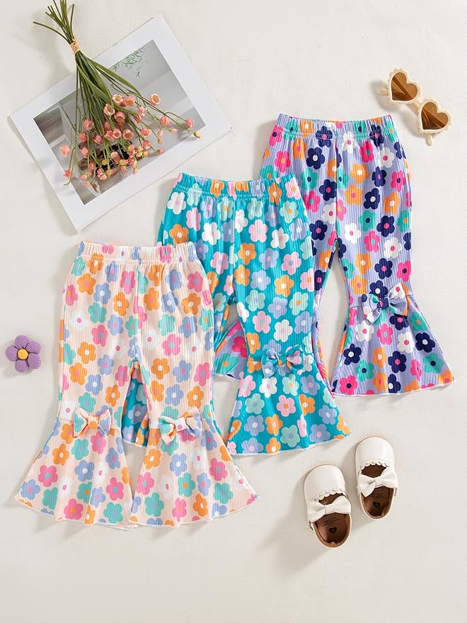 • MATERIAL: Baby girls flare pants are made polyester blend, are very soft and breathable, skin-friendly, no any harm for baby‘s delicate skin. toddler girls bell bottom pants are suitable as gifts for children