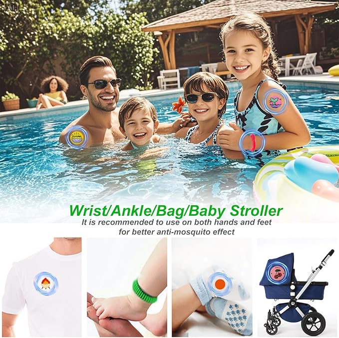 - 360Pcs Mosquito Stickers & 6Pcs Waistbands : Rich stickers and bracelets provide all-round protection, let your family and kids spend a holiday free from mosquito interference. With their compact and portable design, these stickers can be easily applied to any surface. Simply stick them onto your clothing, bags, strollers, hats, or any surface you desire.