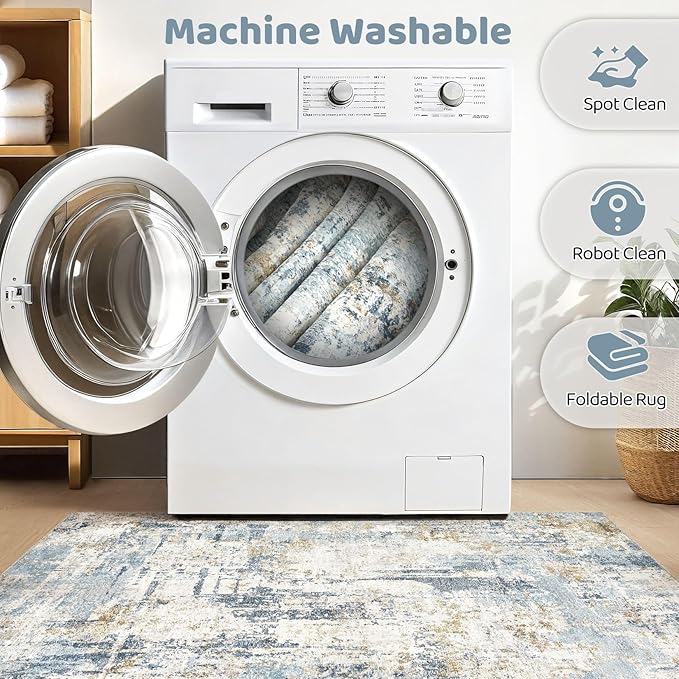 - MACHINE WASHABLE: Our rugs for living room is washable for easy care, directly toss in washing machine in cold water. for minor stains, simply vacuum with a hand-held vacuum or shake off outdoors. for water or coffee stain, wipe with a dry towel promptly