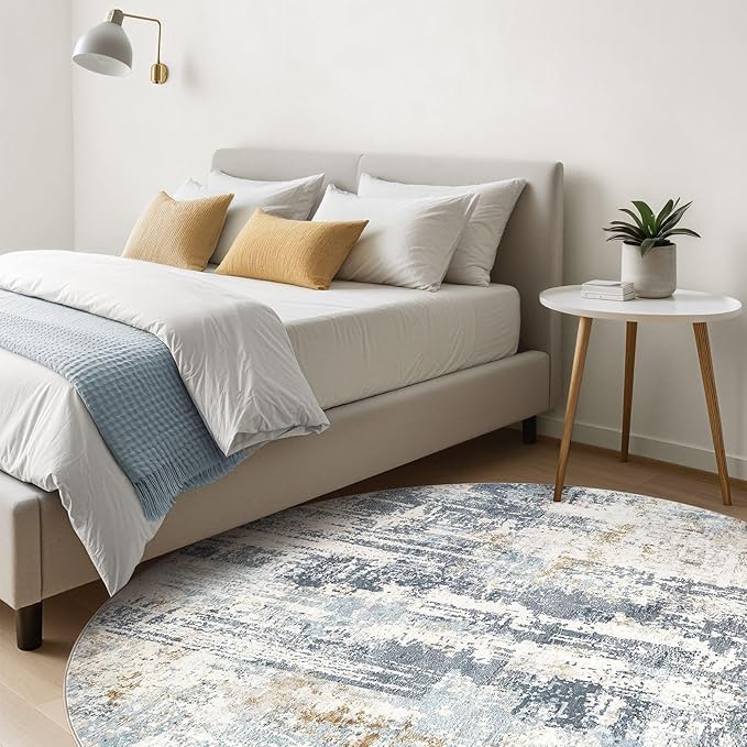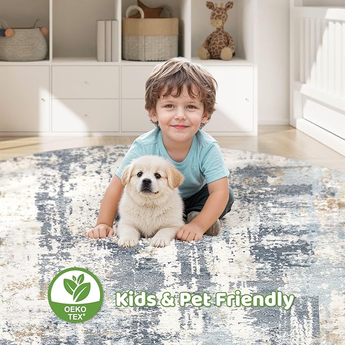 Round Rug Living Room Rugs: 10Ft Washable Circle Large Abstract Modern Soft Stain Resistant Non Slip Indoor Floor Carpet for Bedroom Nursery Office Dining Room Dorm Home House Decor- Light Blue