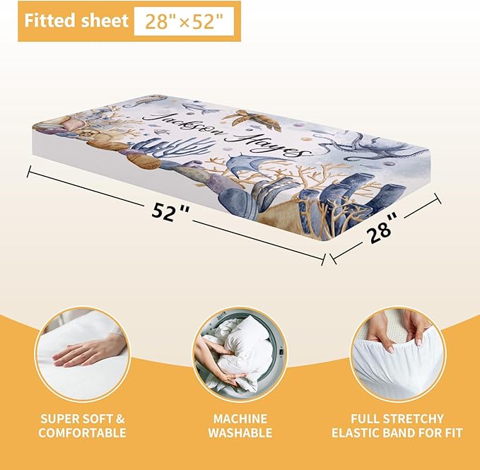 Custom Crib Bedding Set - 5 Pcs Customized Baby Crib Set with Name - Soft Double Layer Marine Animals Nursery Baby Bedding Set for Girls Boys - Personalized for Infant Toddler