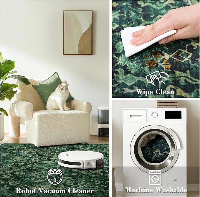 - Easy to Clean Washable Rug: Say goodbye to hidden dirt and debris. The 0.2 inch low pile of this entryway rug keeps most dirt on the surface, you can clean it regularly with a vacuum cleaner, broom or rag. For deep cleaning, machine washing is available and it won't easily deformed and still as a new antique rug.