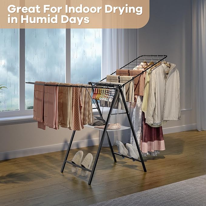 - Spacious & Efficient Drying - Maximize your drying space with APEXCHASER 2-tier laundry drying rack, featuring 22 rails and 4 shoe slots for quick, organized drying of various garments and footwear