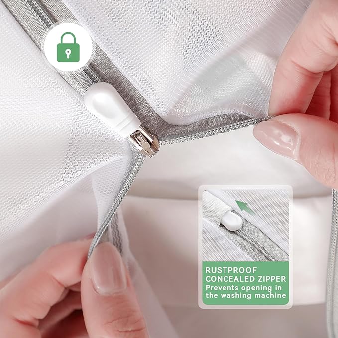 - Convenient Zip Design: This delicate laundry bag with rustproof zip and protective cover. easy to use and sleek appearance, the unique design really brings convenience to storage and prevents items from falling. please do not put in too much laundry, keep the capacity around 2/3 for smoother washing.