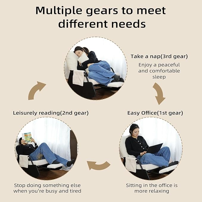- Ergonomic Design with Three Adjustable Levels: The glider rocking chair is meticulously designed with ergonomic principles to protect your spine. The three adjustable settings cater to all your needs. It also features an optimized rocking motion, providing a more comfortable and stable experience