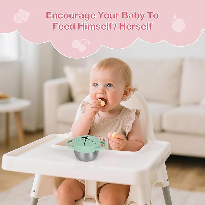 - Dual Easy-Grip Handles: Our snack cup features two soft, ergonomic handles that are lightweight and compact, allowing little hands to grip them securely and comfortably. Whether at home, in the car, or during your baby's adventures exploring the world, the easy-grip design helps develop hand-eye coordination, reduces slipping, and gradually fosters the good habit of independent eating.