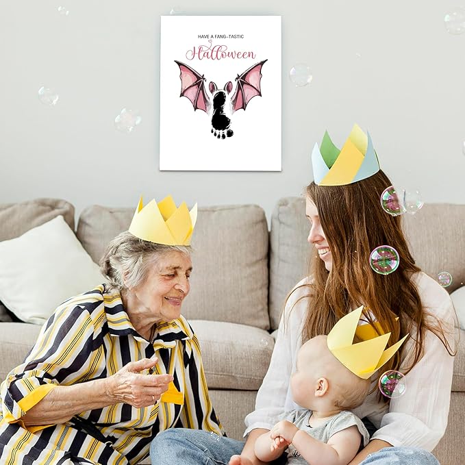 Capture Halloween Memories in 3 Minutes: Create a Lifetime Tradition! This 7.8x9.8 inch canvas painting only needs to press the ink pad with little hands/feet to stamp on the canvas, it will become your baby's first unique masterpiece souvenir!